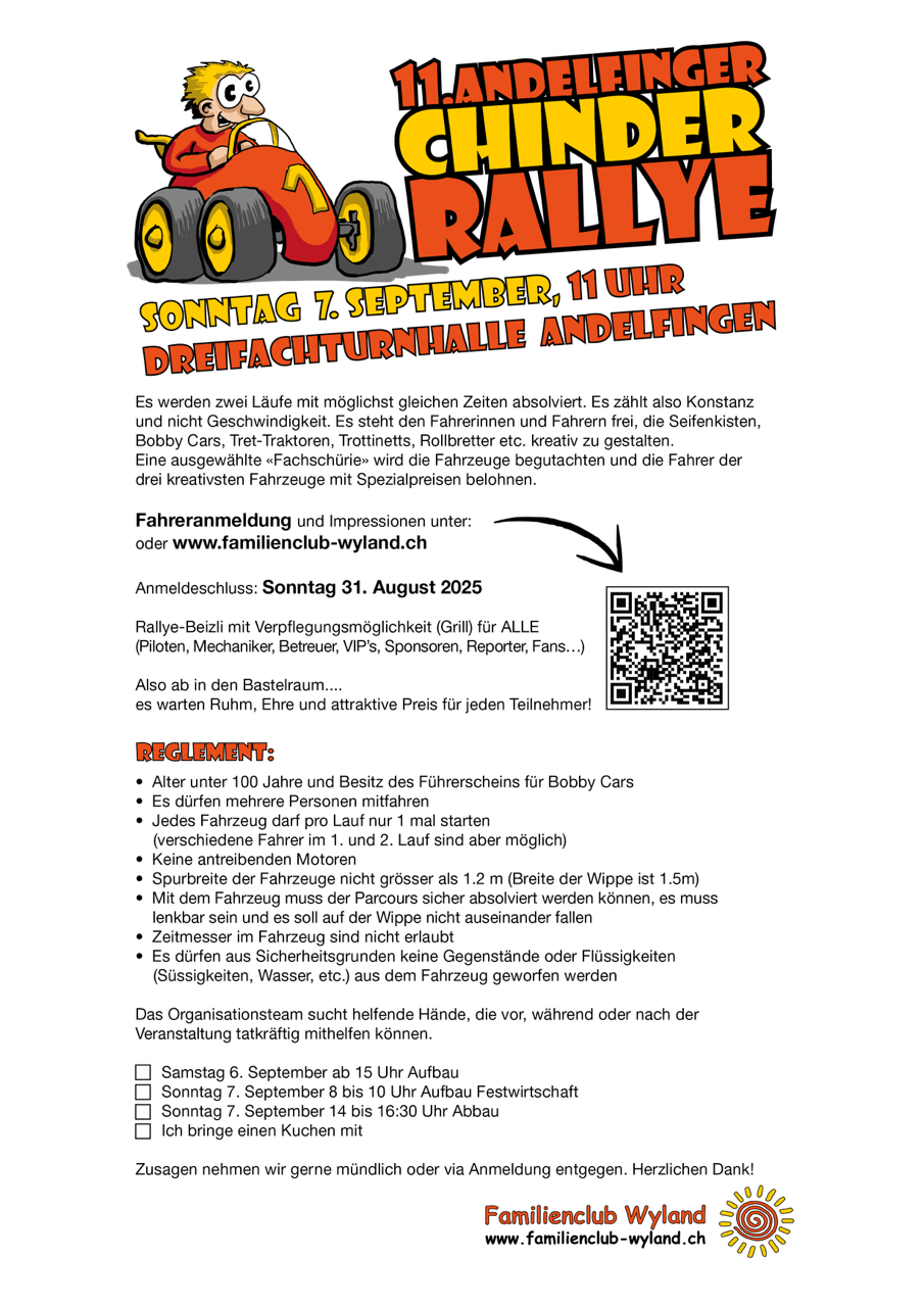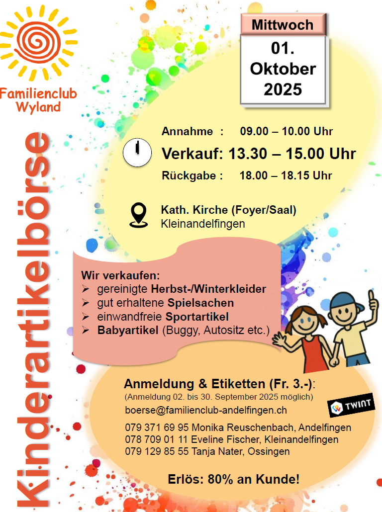 Als Räumlichkeit haben wir den Gemeindesaal der Katholischen Kirche in Kleinandelfingen organisiert, am Mittwoch 29. Oktober um 14 Uhr starten wir, insbesondere für die Schulkinder sind wir bis 18 Uhr vor Ort.