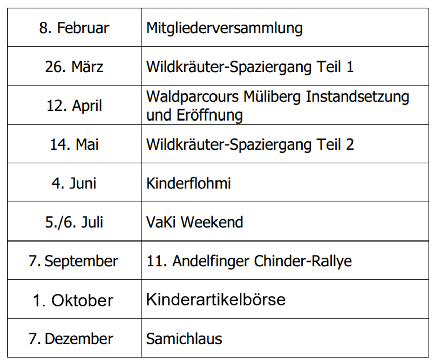 - Frauen / Männer- und Elternanlässe